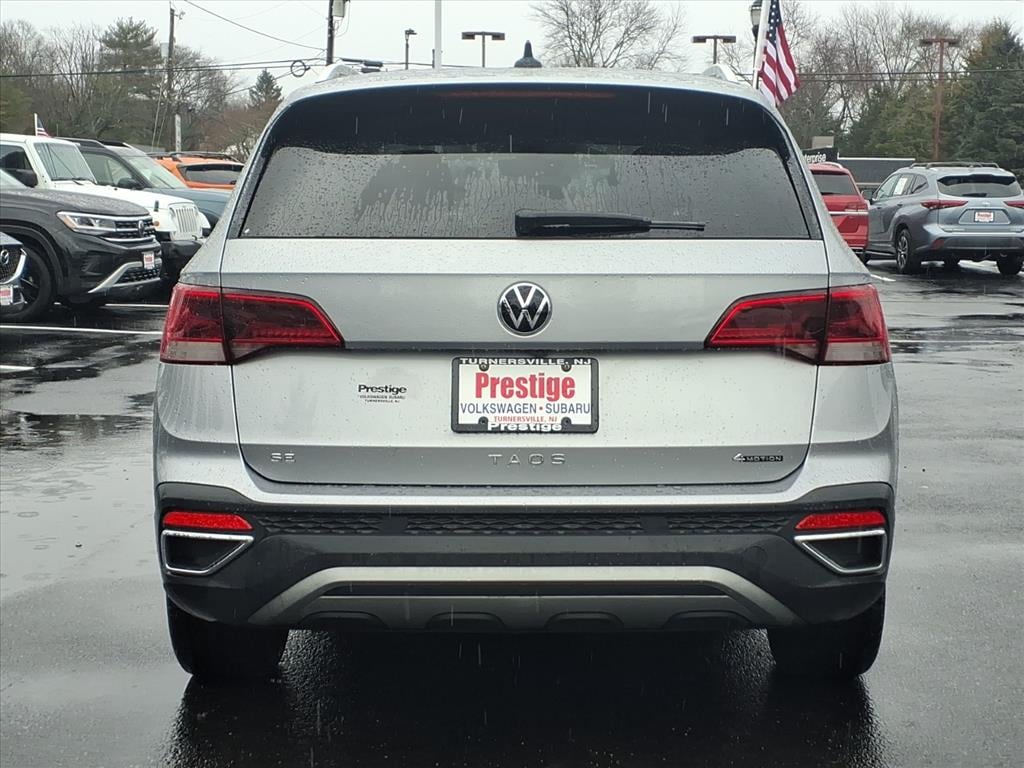 This vehicle is a 2023 Volkswagen Taos 1.5T SE SUV All Wheel Drive with a low mileage of 25,880 miles. It has a silver metallic exterior and a black interior, and it has been crash tested with a 4 out of 5 stars rating. This car has all the modern features such as blind spot sensor, hill start assist, full time four wheel drive, and more. It also has a carfax report available for your convenience. This car is sure to turn heads on the road with its sleek design and powerful performance. Contact Details: Taylor Hagan BDC / Internet Manager, 4271 Black Horse Pike, Turnersville, NJ, 08012, thagan@prestigeautocomplex.com, (856) 629-9200. All offers can not be combined or not necessarily used in conjunction with Manufacturer's Low APR Programs and all prior sales are excluded from any available incentives offered by the Manufacture. Our Internet Pricing includes All Incentives and does not include all applicable Sales Tax, Title and License Fees, Dealer Doc Fee of $599.00 in our Online Sale Price*. Dealer is Not Responsible for Typographical/ Web Errors.